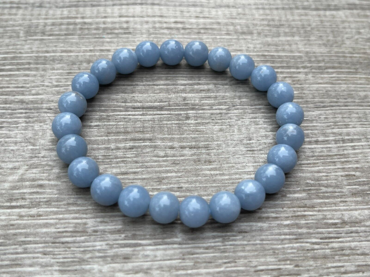 - Stunning Grade A ++ Angelite Crystal Bead Bracelet, Genuine Gemstone Bracelet, creates a deep feeling of peace and tranquility.
