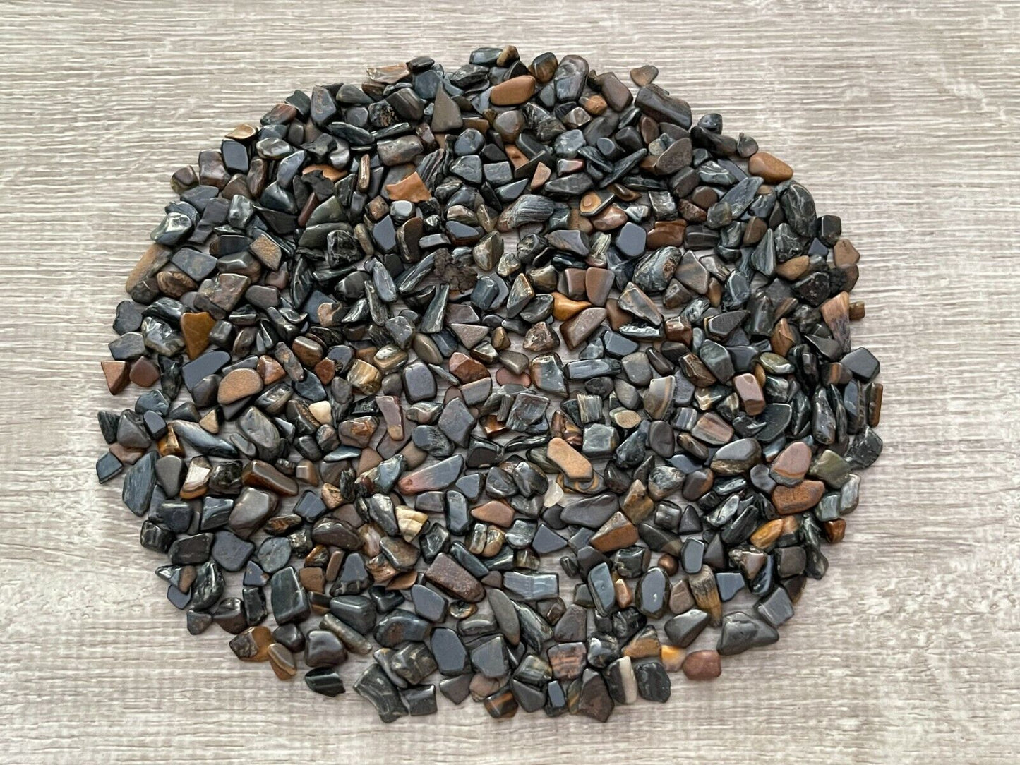- Grade A++ Premium quality, 100% GENUINE NATURAL Blue Tiger Eye chip tumbled stone.