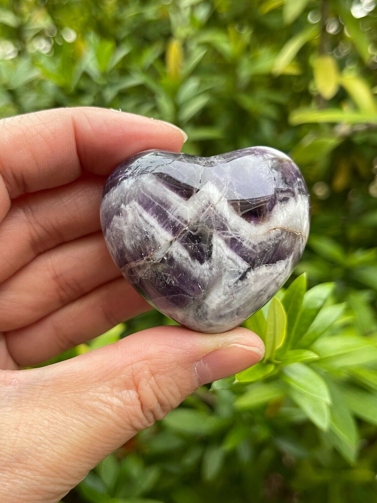 - Grade A++ Large Chevron Amethyst Heart, Nicely Polished Chevron Amethyst Puffy Heart, Chevron Amethyst Palm Stone, Pocket Stone, Worry Stone