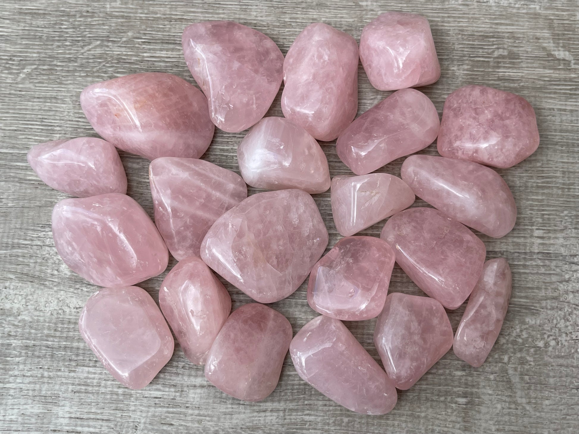 Premium Quality Rose Quartz – Beautifully polished pebbles with soft pink tones and natural variations.
